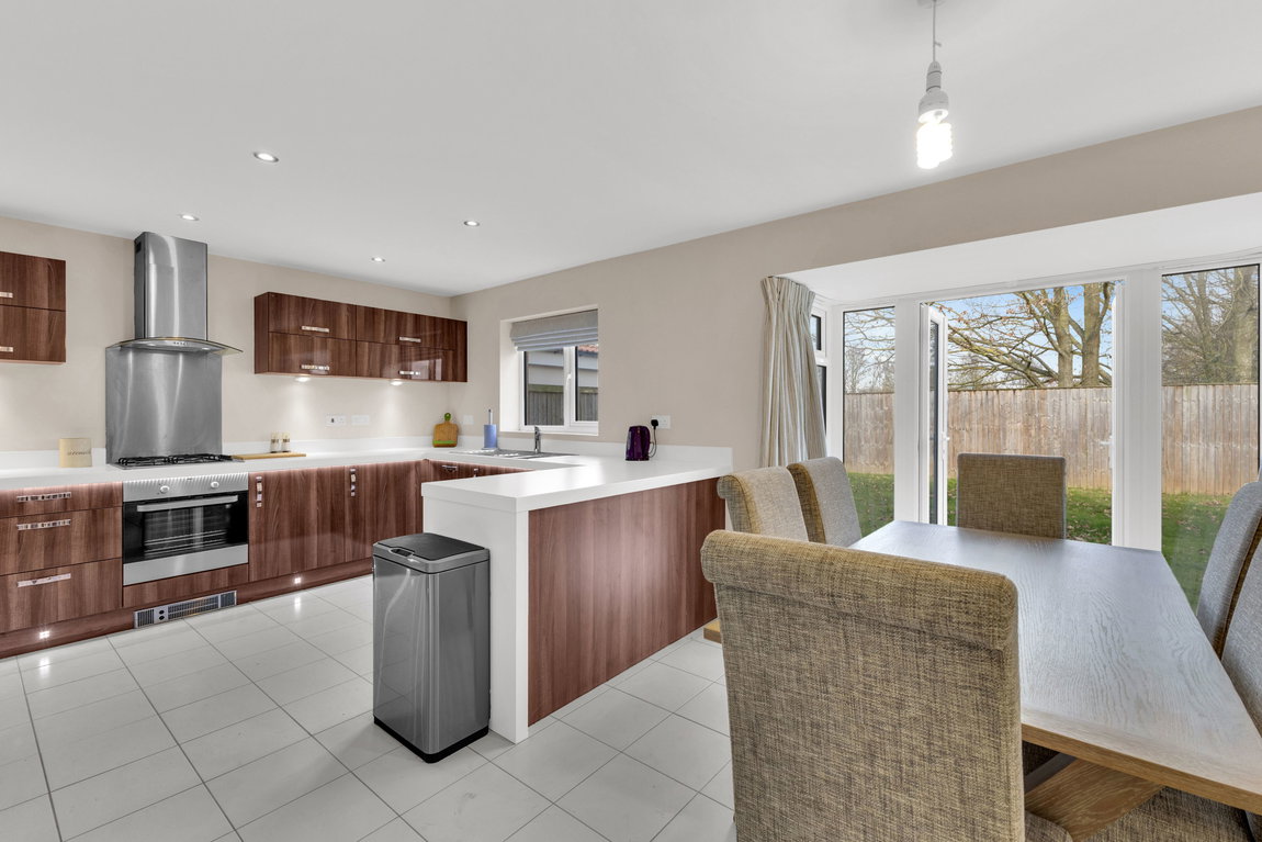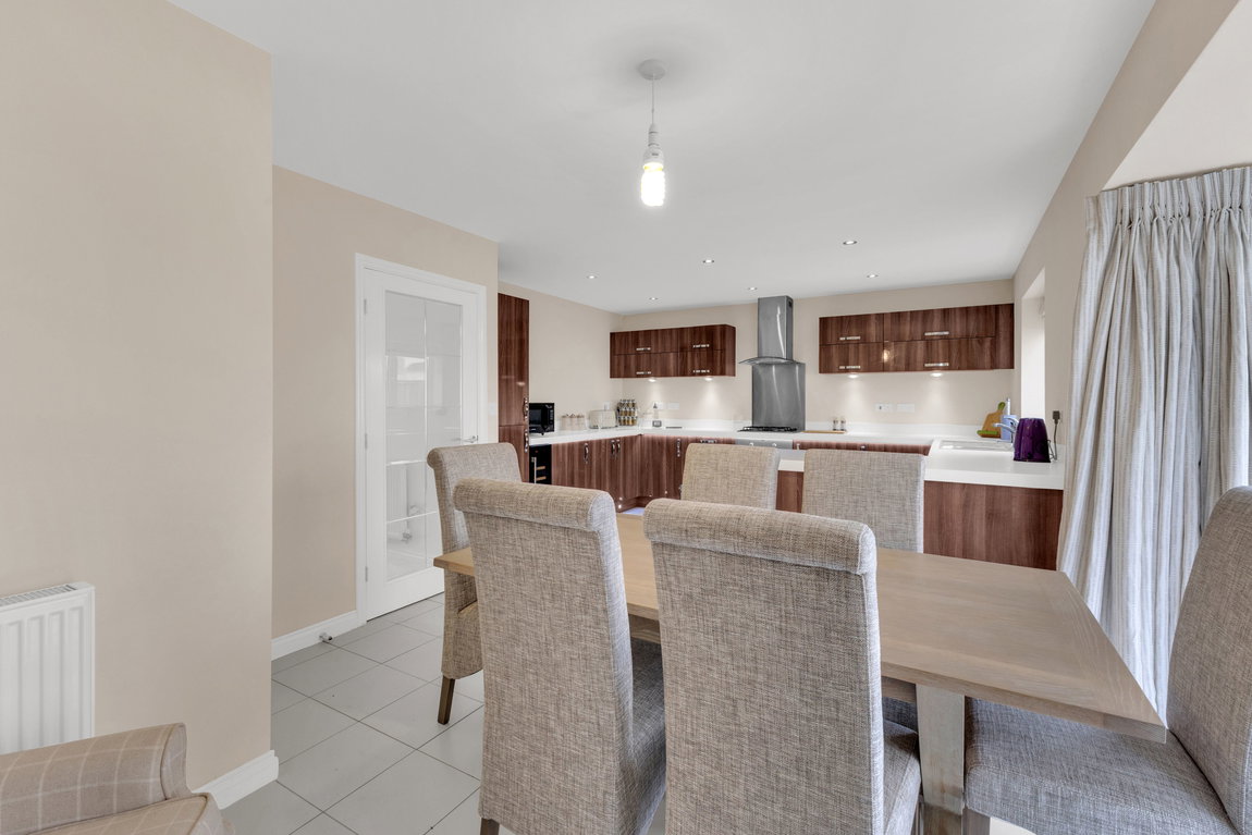 The ground floor is designed with day-to-day living in mind. A bright lounge to the front provides a comfortable space to relax, while the kitchen and dining area at the rear forms the hub of the home—ideal for both everyday meals and entertaining. The kitchen is modern and well-equipped with integrated appliances and good storage, with a separate utility room helping to keep things organised. A downstairs WC adds further convenience.