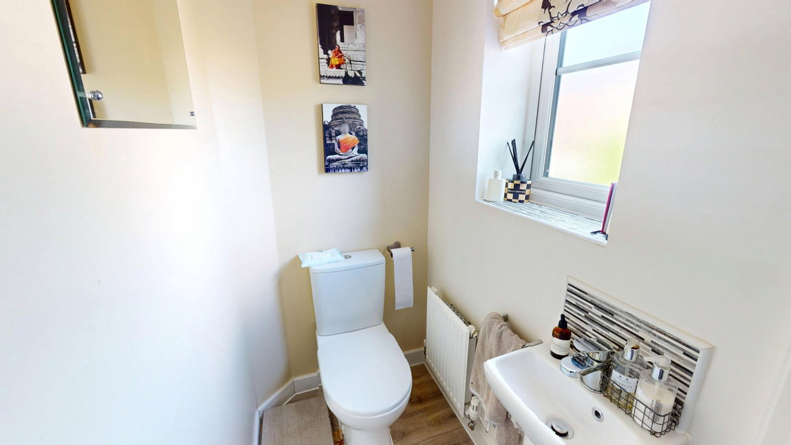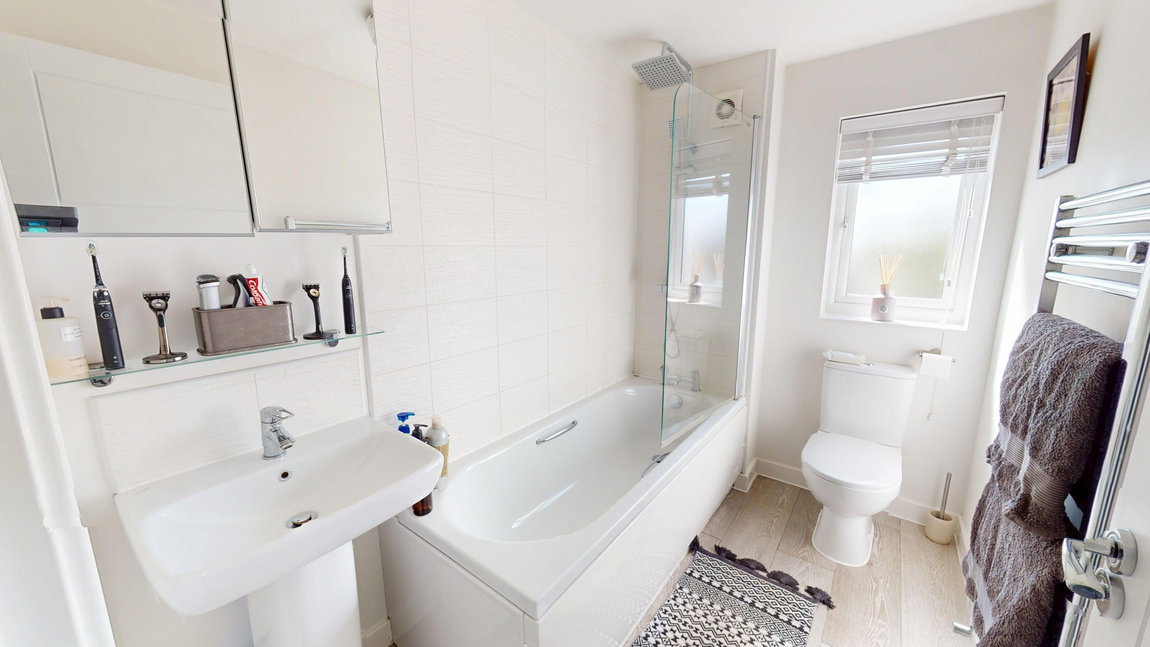Upstairs, there are three bedrooms, offering flexibility for families, guests, or working from home. The main bedroom is a good size, with two additional rooms that can be adapted to suit your needs. A modern family bathroom completes the first floor.